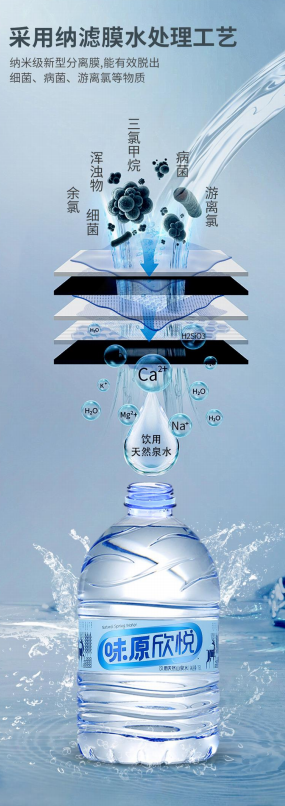 我們的純凈水采用二級(jí)反滲透水處理工藝,成品水品質(zhì)穩(wěn)定,口感綿柔。我們的山泉水采用納濾膜制作工藝,去除有害物質(zhì)而保留部分礦物質(zhì),該工藝可自由調(diào)配,做到口感與礦物質(zhì)兼?zhèn)洌炔粫?huì)過多的礦物質(zhì)導(dǎo)致口感偏硬,也不會(huì)為了追求口感而缺失礦物質(zhì)的含量。